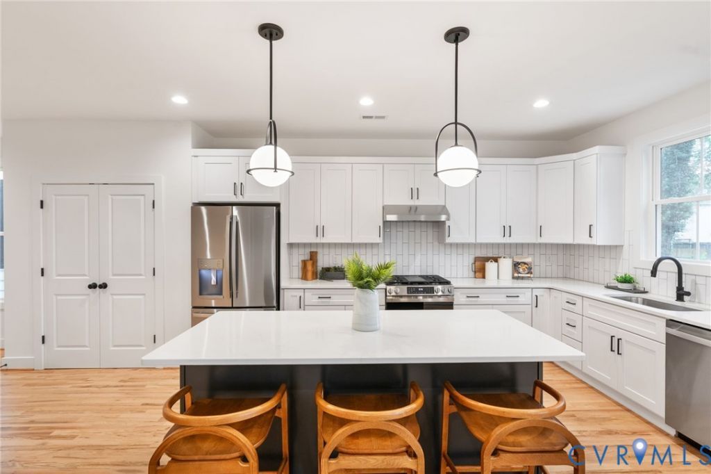 An exceptional new construction home in the North Church Hill. With 4 bedrooms and 2.5 baths, this spacious residence blends timeless, period-inspired details that complement the historic streetscape with the modern comforts you want today. Inside, you'll find warm wood floors, designer finishes, 9' ceilings, and an airy open layout filled with natural light. The main level offers a generous living room that flows into an eat-in kitchen featuring a large island, shaker cabinetry, quartz countertops, stainless steel appliances, and a striking tile backsplash-perfect for everyday living and entertaining. Upstairs, the vaulted-ceiling primary suite includes great closet space and a beautiful en-suite bath. Three additional bedrooms, an additional full bath, and convenient second-floor laundry. Outside, enjoy off-street parking and a large backyard, plus a classic front porch ideal for morning coffee or evening downtime-just steps from the neighborhood's favorite restaurants.