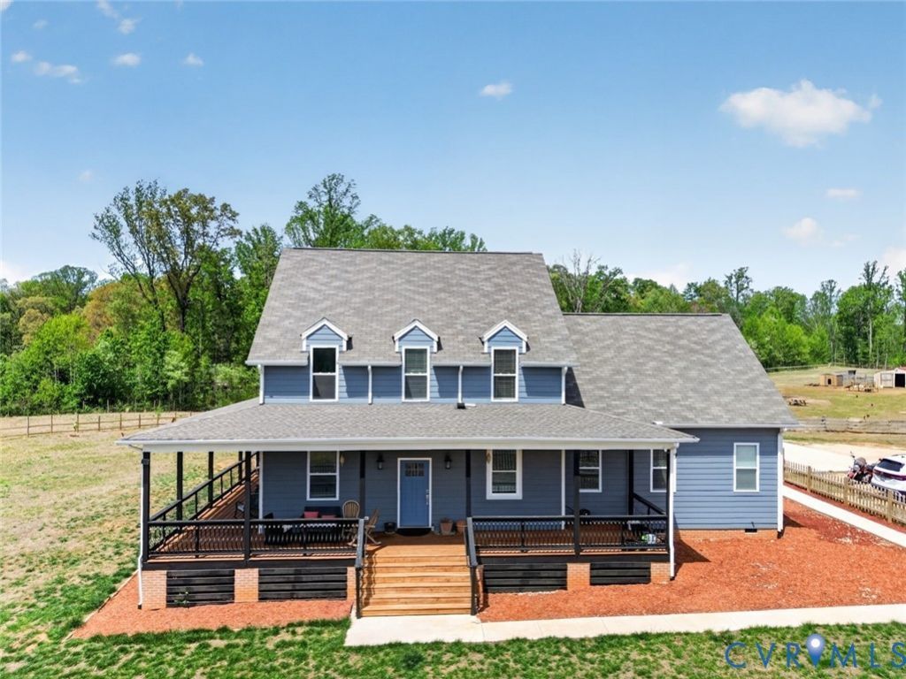 Located on 20 acres in Goochland County, this 5 bedroom 3.5 bath home is ready for new owners. This home is perfect for entertaining and enjoying a rural lifestyle. You are welcomed by a wrap around porch and enter to find an open foyer, formal dining room, large family room and eat in kitchen with a built in buffet area, Quartz countertops and backsplash, SS appliances, breakfast bar and a walk in pantry. The first level also features the primary bedroom with attached bath (double vanity with storage, toilet closet, garden tub with a Quartz feature wall, tiled easy entry shower), laundry room with sink and folding counter, a half bath and access to the 2 car garage. The second level boasts a large loft perfect for a media space or game area, bedroom 2 with an attached bath (single vanity with storage, toilet, tub/shower), 2 more bedrooms that share the full hall bath (double vanity with storage, toilet, tub/shower) and bedroom 5 which could also be a great bonus area for workout space, office area or craft space. The outdoor space has a covered patio with a stone pizza oven and swing and a screened porch. Part of the yard is fenced with a small barn and chicken coop. The property also features many fruit trees. Located close to the interstate, LVP and tile floor throughout, bulit in 2024, LP siding. Do not miss this opportunity, SCHEDULE YOUR TOUR TODAY!
